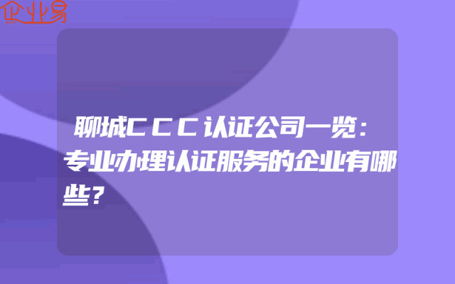 - 聊城CCC认证公司一览:专业办理认证服务的企业有哪些?