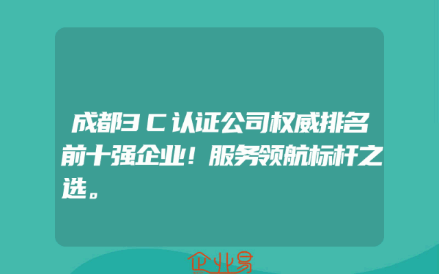 - 成都3C认证公司权威排名前十强企业!服务领航标杆之选。