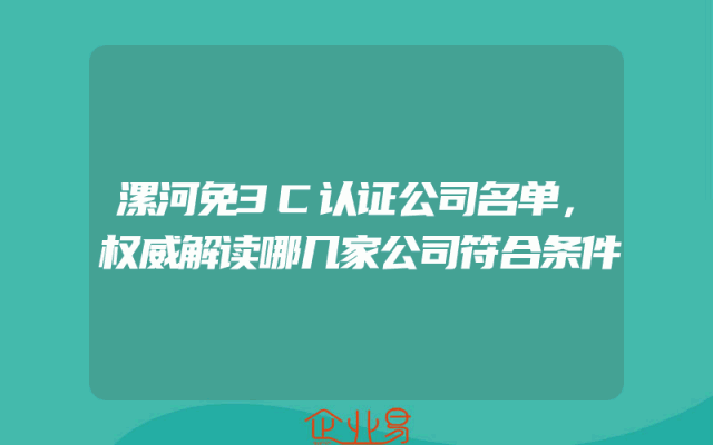 - 漯河免3C认证公司名单,权威解读哪几家公司符合条件