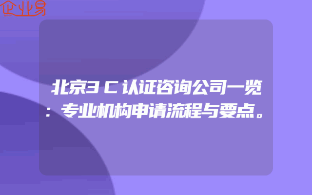 - 北京3C认证咨询公司一览:专业机构申请流程与要点。