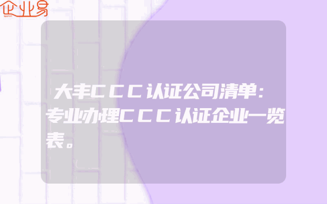 - 大丰CCC认证公司清单:专业办理CCC认证企业一览表。