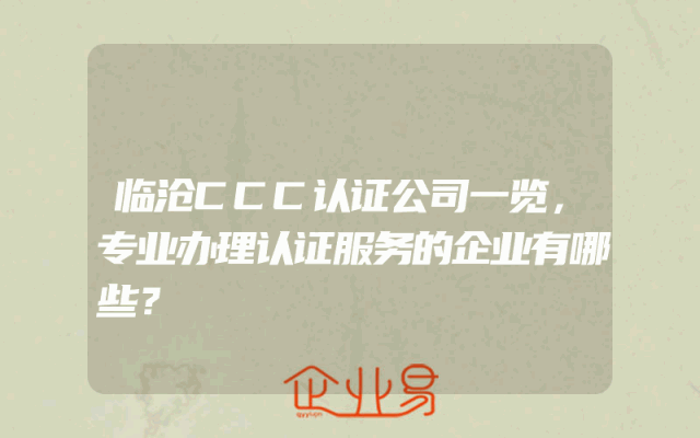 - 临沧CCC认证公司一览,专业办理认证服务的企业有哪些?
