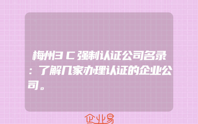 - 梅州3C强制认证公司名录:了解几家办理认证的企业公司。