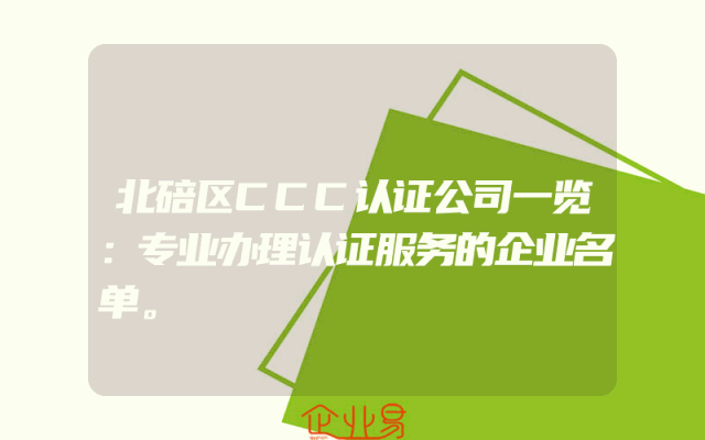 - 北碚区CCC认证公司一览:专业办理认证服务的企业名单。