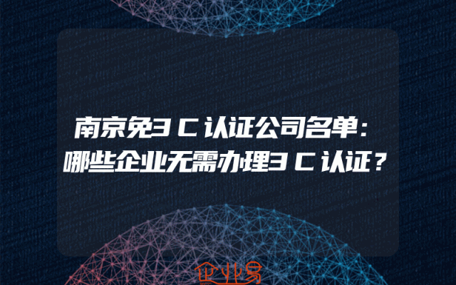- 南京免3C认证公司名单:哪些企业无需办理3C认证?
