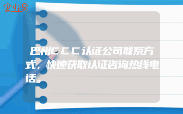 - 巴州CCC认证公司联系方式,快速获取认证咨询热线电话。