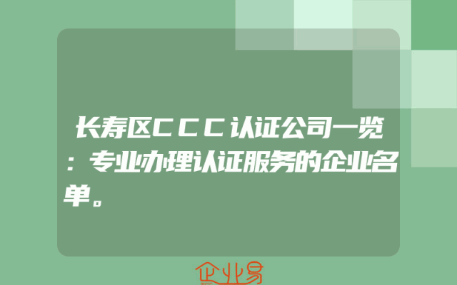 - 长寿区CCC认证公司一览:专业办理认证服务的企业名单。