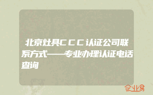 - 北京灶具CCC认证公司联系方式——专业办理认证电话查询