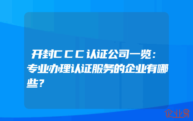 - 开封CCC认证公司一览:专业办理认证服务的企业有哪些?