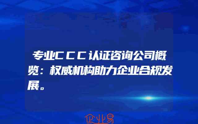 - 专业CCC认证咨询公司概览:权威机构助力企业合规发展。