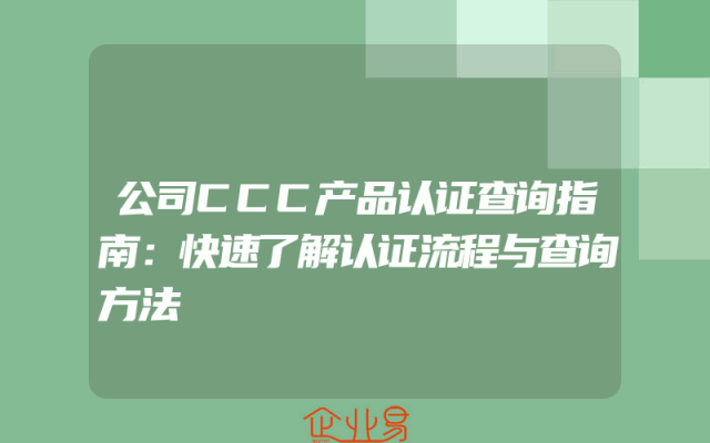 - 公司CCC产品认证查询指南:快速了解认证流程与查询方法