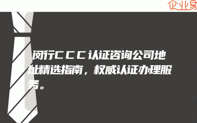- 闵行CCC认证咨询公司地址精选指南,权威认证办理服务。