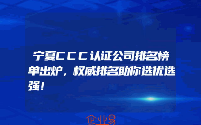 - 宁夏CCC认证公司排名榜单出炉,权威排名助你选优选强!