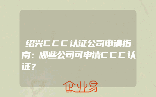 - 绍兴CCC认证公司申请指南:哪些公司可申请CCC认证?