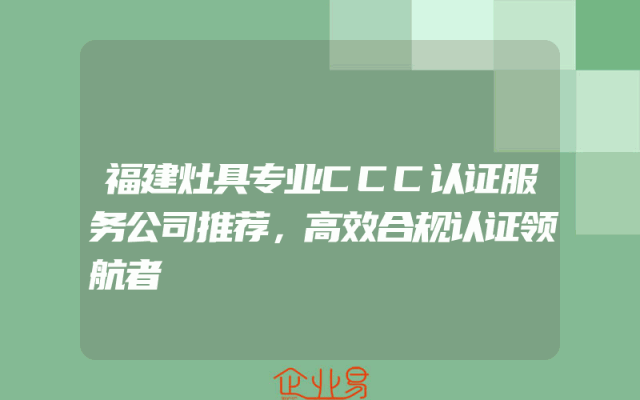 - 福建灶具专业CCC认证服务公司推荐:高效合规认证领航者一、引言在灶具行业,符合国家强制性产品认证(CCC认证)的标准是企业持续稳健发展的必要条件。福建作为灶具生产的重要基地之一,众多企业对于CCC认证的需求日益旺盛。本文将为您推荐一家在福建