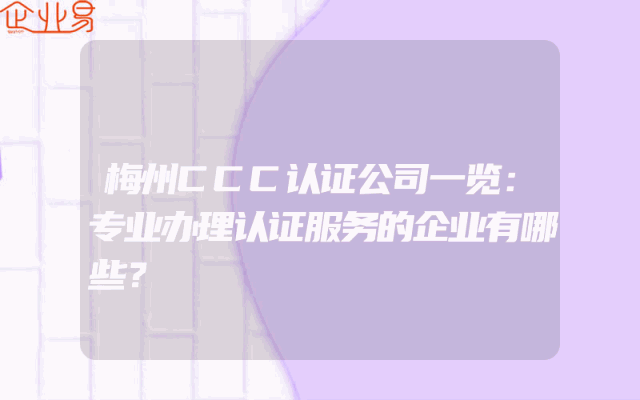 - 梅州CCC认证公司一览:专业办理认证服务的企业有哪些?