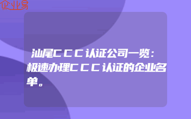 - 汕尾CCC认证公司一览:极速办理CCC认证的企业名单。