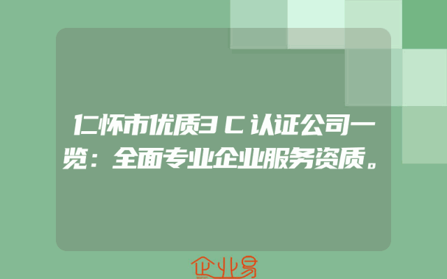 - 仁怀市优质3C认证公司一览:全面专业企业服务资质。