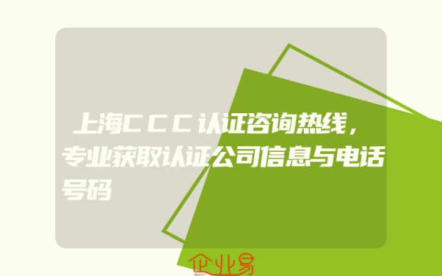 - 上海CCC认证咨询热线,专业获取认证公司信息与电话号码