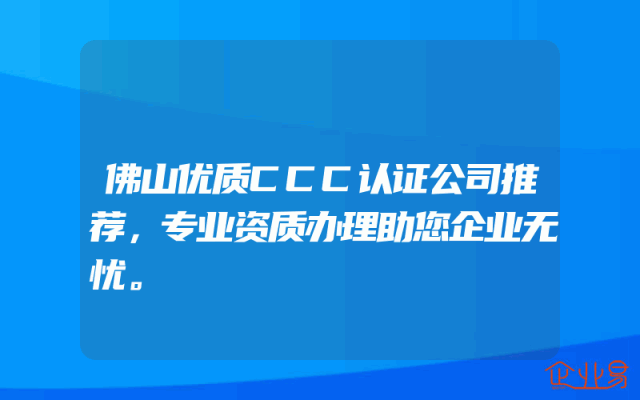 - 佛山优质CCC认证公司推荐:专业资质办理助您企业无忧一、引言在商界日新月异的今天,企业的运营和发展离不开各类资质和认证的支持。佛山地区的企业亦是如此,而CCC认证作为企业市场准入的重要一环,更是受到了广泛关注。选择一家优质的CCC认