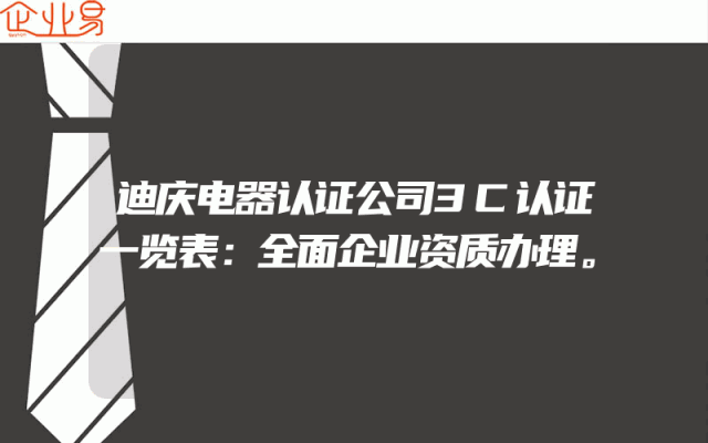 - 迪庆电器认证公司的3C认证一览表:全面解析企业资质办理一、迪庆电器认证公司概述迪庆电器认证公司作为专业的电器认证服务机构,为广大电器企业提供全面的资质办理服务。其中,企业的3C认证是该公司服务的重点项目之一。作为一家有着丰富经验的企业服务行