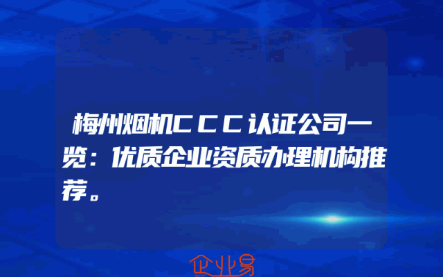 - 梅州烟机CCC认证公司一览:优质企业资质办理机构推荐。