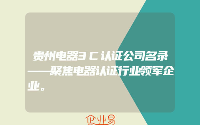 - 贵州电器3C认证公司名录——聚焦电器认证行业领军企业。