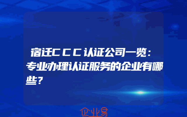 - 宿迁CCC认证公司一览:专业办理认证服务的企业有哪些?