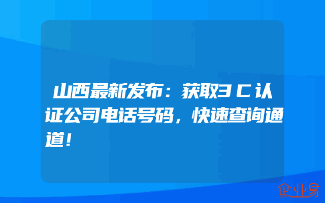 - 山西最新发布:获取3C认证公司电话号码,快速查询通道!