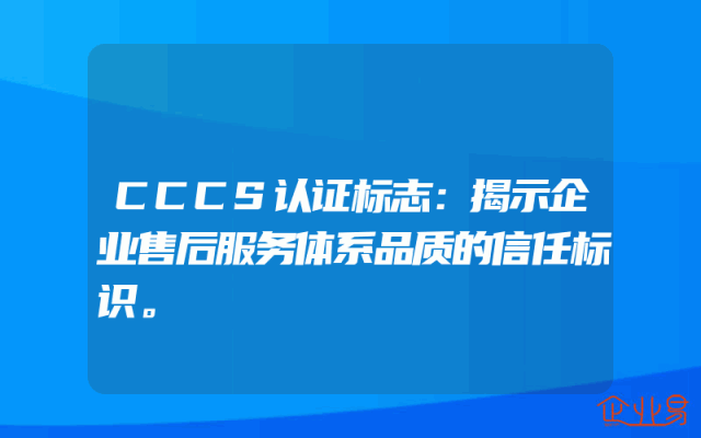 - CCCS认证标志:揭示企业售后服务体系品质的信任标识。