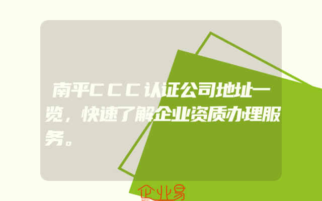- 南平CCC认证公司地址一览,快速了解企业资质办理服务。