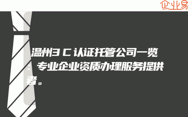 - 温州3C认证托管公司一览:专业企业资质办理服务提供者。