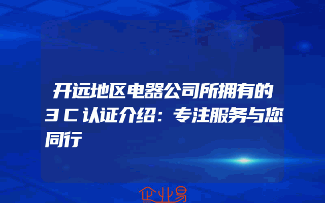 - 开远地区电器公司所拥有的3C认证介绍:专注服务与您同行