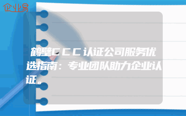 - 鹤壁CCC认证公司服务优选指南:专业团队助力企业认证。