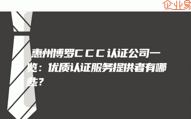 - 惠州博罗CCC认证公司一览:优质认证服务提供者有哪些?
