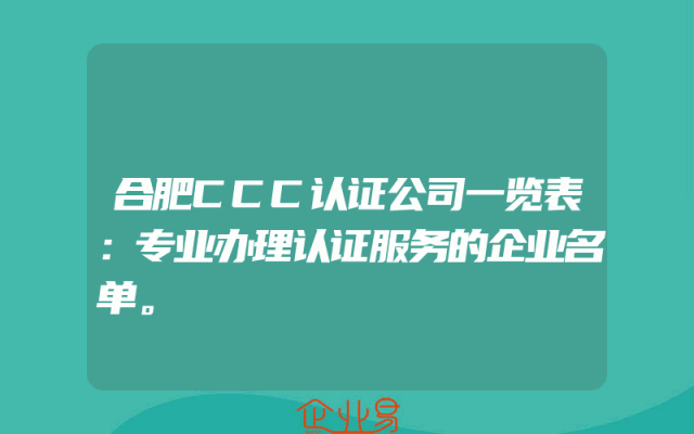 - 合肥CCC认证公司一览表:专业办理认证服务的企业名单。