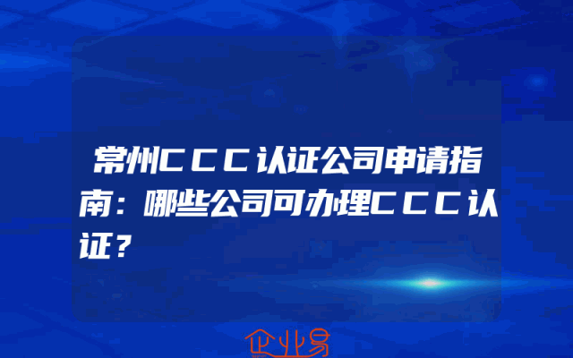 - 常州CCC认证公司申请指南:哪些公司可办理CCC认证?