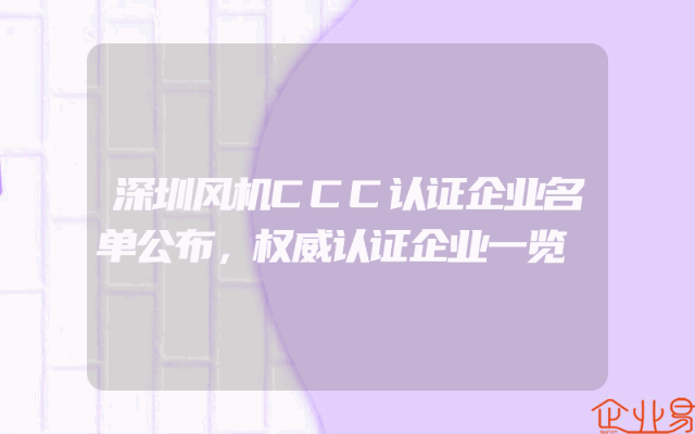 - 深圳风机CCC认证企业名单公布,权威认证企业一览