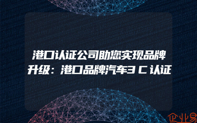- 港口认证公司助您实现品牌升级:港口品牌汽车3C认证