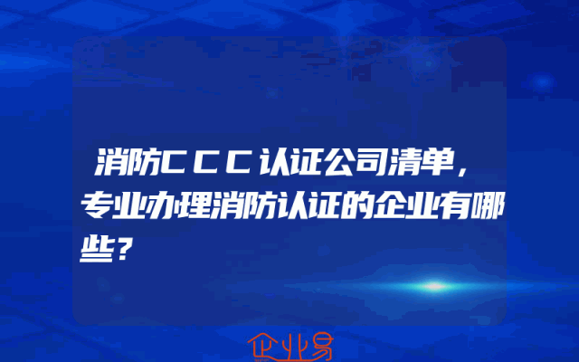 - 消防CCC认证公司清单,专业办理消防认证的企业有哪些?