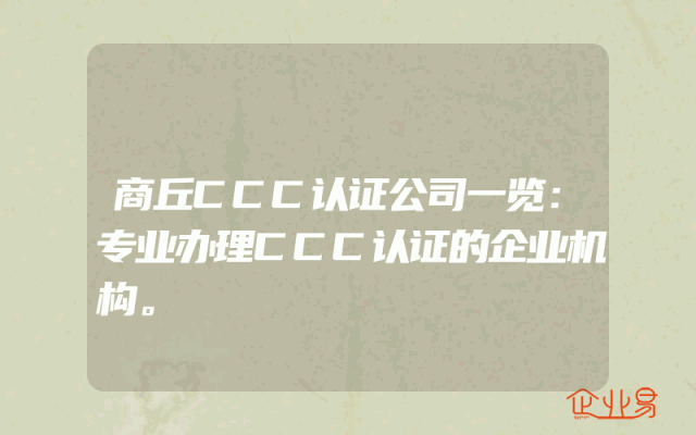 - 商丘CCC认证公司一览:专业办理CCC认证的企业机构。