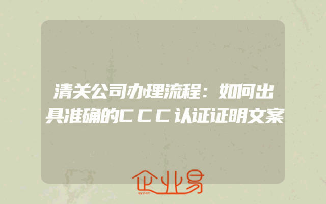 - 清关公司办理流程:如何出具准确的CCC认证证明文案