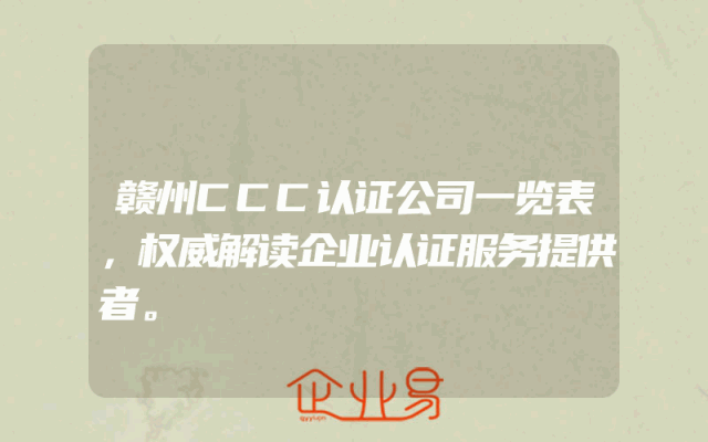 - 赣州CCC认证公司一览表,权威解读企业认证服务提供者。
