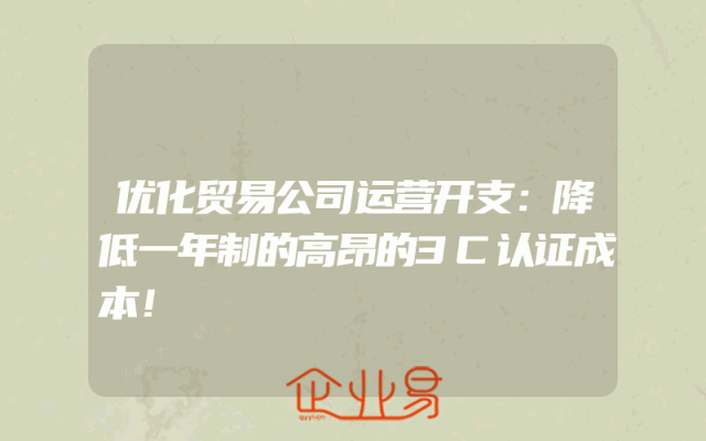 - 优化贸易公司运营开支:降低一年制的高昂的3C认证成本!