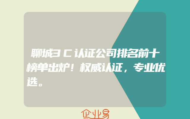 - 聊城3C认证公司排名前十榜单出炉!权威认证,专业优选。