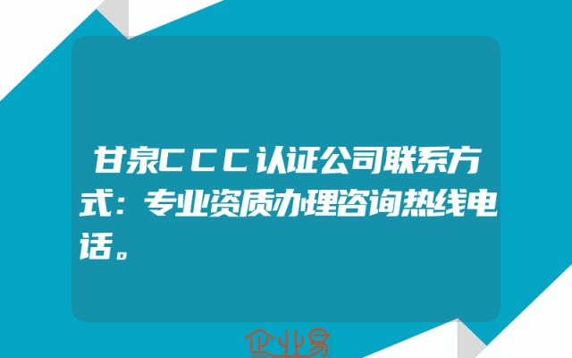 - 甘泉CCC认证公司联系方式:专业资质办理咨询热线电话。