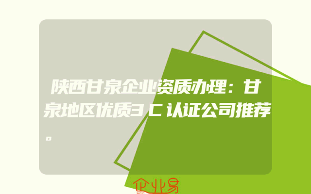 - 陕西甘泉企业资质办理:甘泉地区优质3C认证公司推荐。
