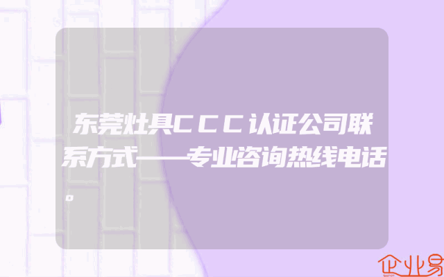 - 东莞灶具CCC认证公司联系方式——专业咨询热线电话。