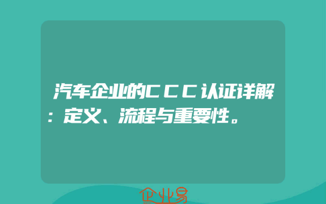 - 汽车企业的CCC认证详解:定义、流程与重要性。