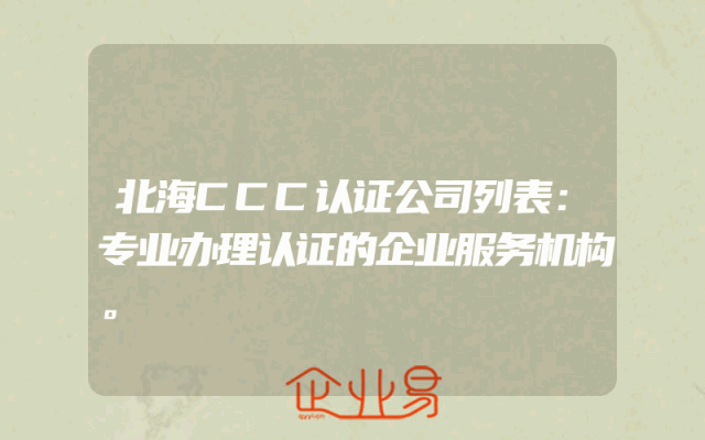 - 北海CCC认证公司列表:专业办理认证的企业服务机构。